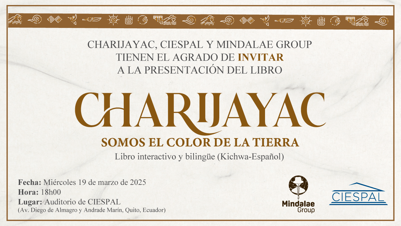 Charijayac, CIESPAL y Mindalae Group tienen el agrado de invitar a la presentación del libro Charijayac «Somos el color de la tierra».