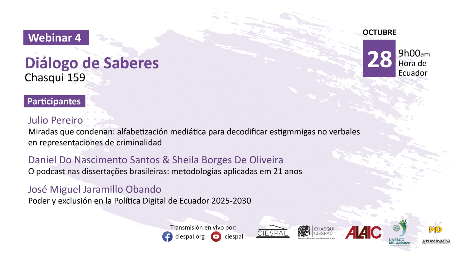 En el marco de la edición 159 de la Revista Latinoamericana de Comunicación Chasqui, cuyo monográfico aborda “Planteamientos críticos y perspectivas de la alfabetización mediática, digital, informacional y comunicacional en Latinoamérica”, se organiza una serie de encuentros virtuales destinados a profundizar en esta temática.